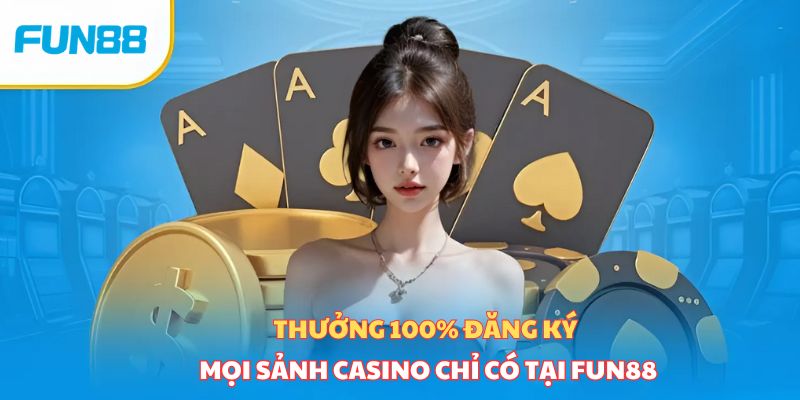 Fun88 nổi danh là sân chơi cá cược trực tuyến chi những khuyến mãi khủng cho thành viên tham gia, nên chương trình thưởng 100% đăng ký mọi sảnh Casino trực tuyến là khuyến mãi có thật, chi tiết chương trình như sau: